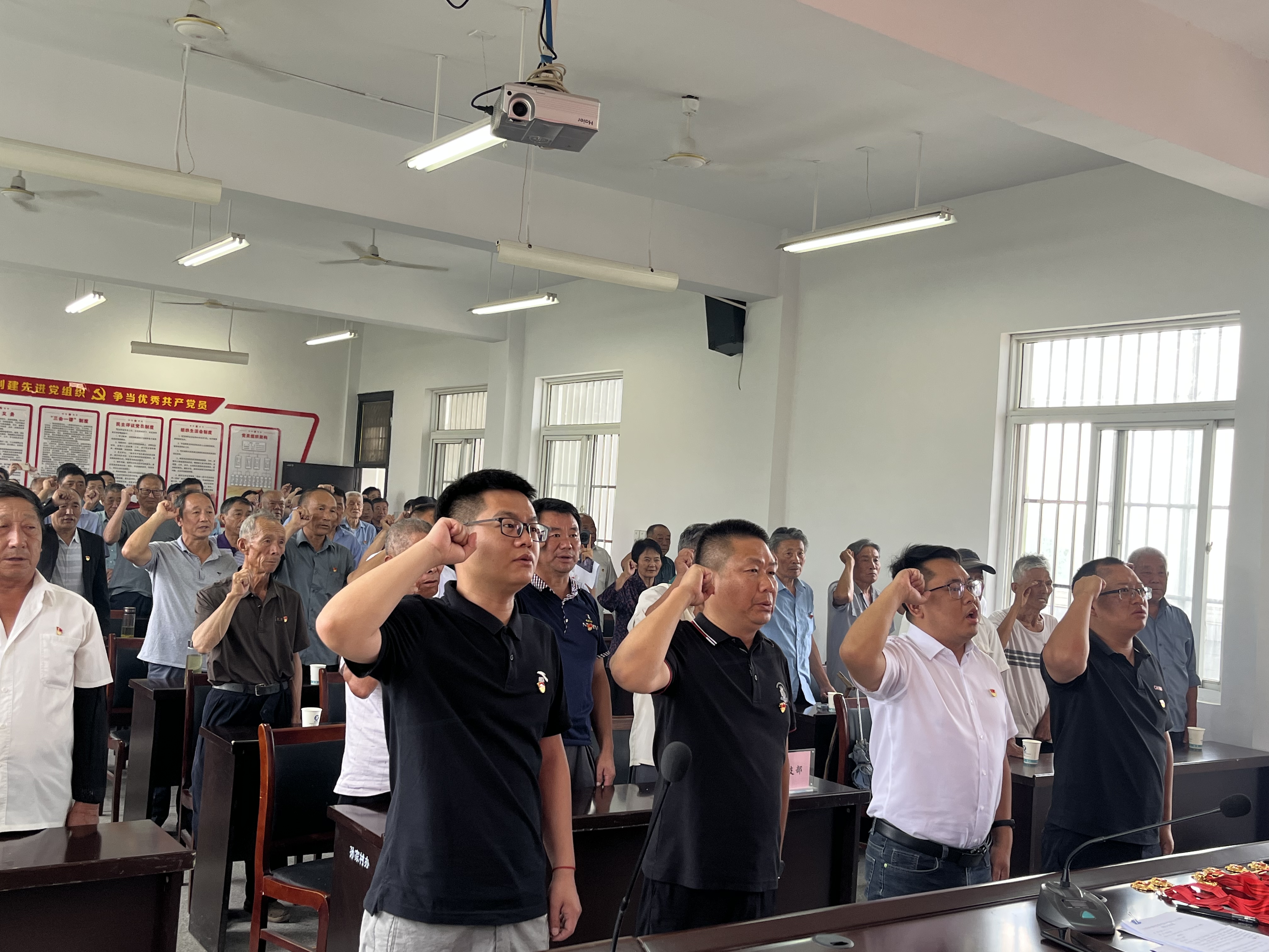 全體黨員緊握右拳,面向鮮紅的黨旗重溫了入黨誓詞;在全體黨員的見證下,孫家村黨總支書記趙陽、興全礦業(yè)黨支部副書記許登科向7位老黨員同志頒發(fā)了“光榮在黨50周年”紀(jì)念章,激勵廣大黨員進(jìn)一步堅定對黨的忠誠熱愛和為共產(chǎn)主義事業(yè)奮斗終身的理想信念。