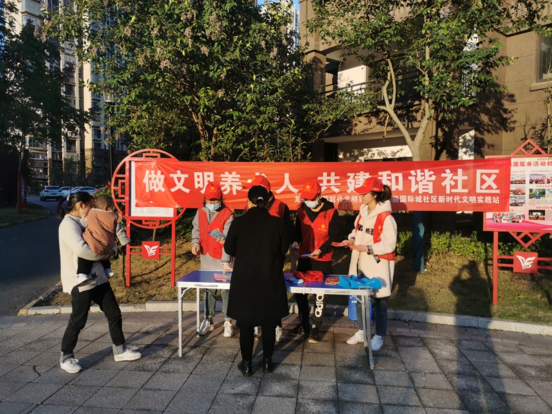 志愿者向社區(qū)群眾宣傳文明養(yǎng)犬、《滁州市文明行為促進(jìn)條例》、《滁州文明16條》(2.0版)、《滁州市民公約》等內(nèi)容,引導(dǎo)群眾駕乘電動(dòng)車(chē)佩戴頭盔,厲行勤儉節(jié)約,反對(duì)鋪張浪費(fèi),養(yǎng)成文明健康綠色環(huán)保的生活方式,樹(shù)立文明新風(fēng)尚,爭(zhēng)做文明有禮滁州人。