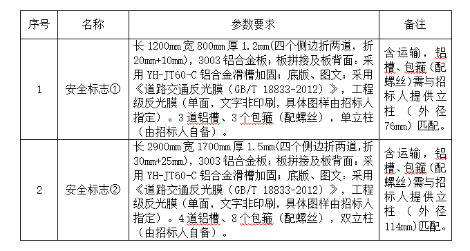 1. 本項(xiàng)目最高限價(jià):安全標(biāo)志①為365元/塊,安全標(biāo)志②為2230元/塊,報(bào)價(jià)應(yīng)包含但不限于產(chǎn)品制作、運(yùn)輸及稅金等費(fèi)用,我司不再支付其他任何費(fèi)用。投標(biāo)報(bào)價(jià)不得高于最高限價(jià),否則按無(wú)效標(biāo)處理。