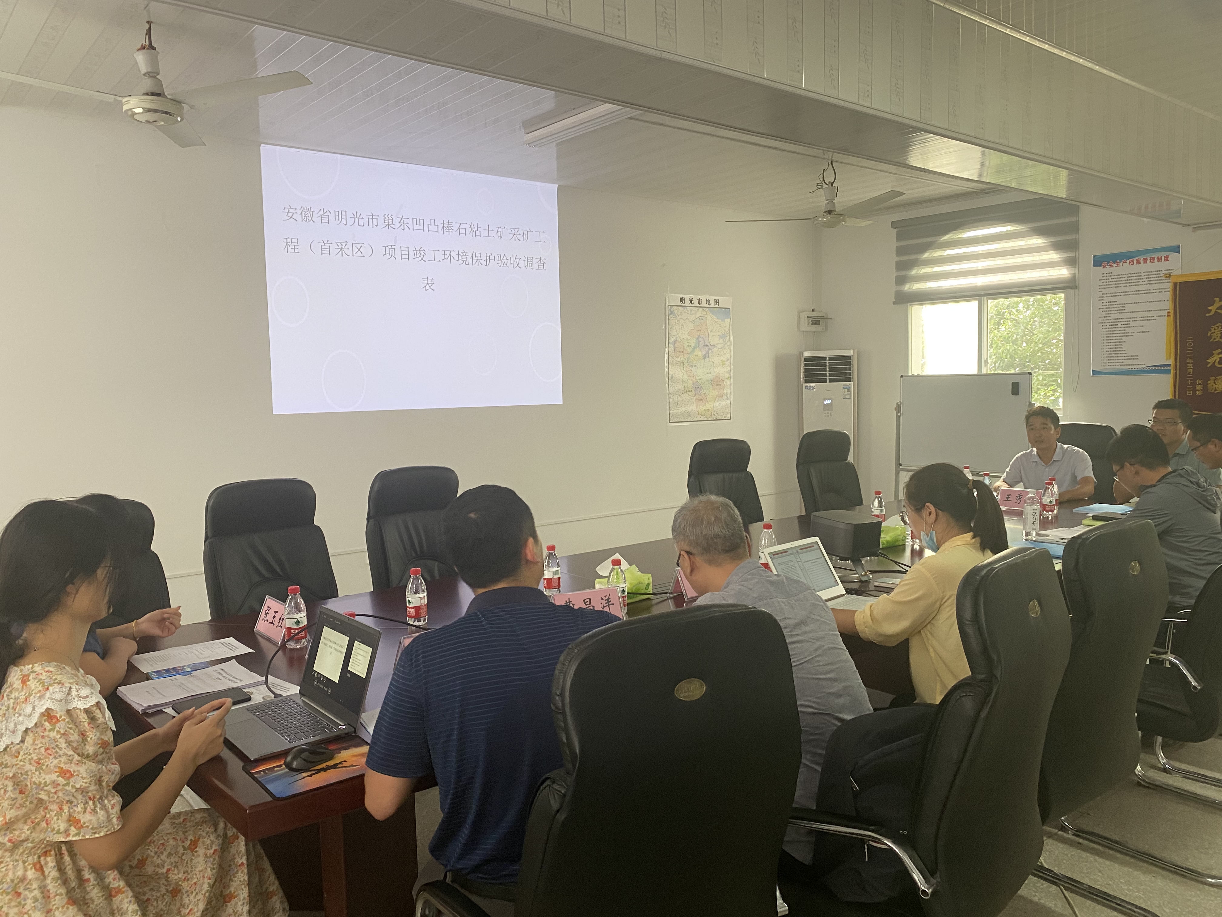8月25日下午,明光市巢東凹凸棒石粘土礦(首采區(qū))采礦工程竣工環(huán)境保護驗收調(diào)查表評審及環(huán)境保護驗收會議在興明礦業(yè)公司召開。滁州市興明礦業(yè)有限公司、滁州瑯琊山礦業(yè)工程技術(shù)有限公司、滁州博觀環(huán)??萍加邢薰镜拇砑?名評審專家參加會議,興明礦業(yè)總經(jīng)理王秀超主持會議。